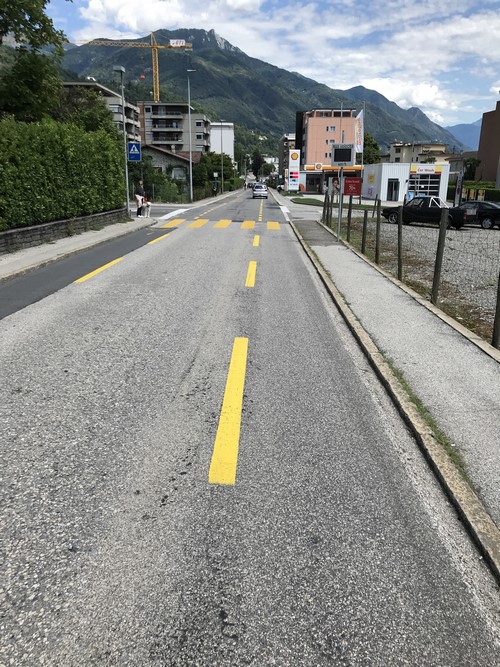 Pedalo la SS34 fino a Cannobio poi allungo un pochino il percorso per passare il torrente Cannobino ed il paese di Traffiume. La strada è ancora lunga manca poco per arrivare a metà percorso, subito dopo San Bartolomeo arrivo al confine svizzero, cento chilometri esatti. Mezz’ora ed arrivo a Locarno, la località svizzera la passo velocemente, un passaggio in piazza Grande e poi esco veloce dalla città, ordinata, pulita, non caotica e soprattutto con gli spazi per i ciclisti adeguati e sicuri per correre nelle strade cittadine.