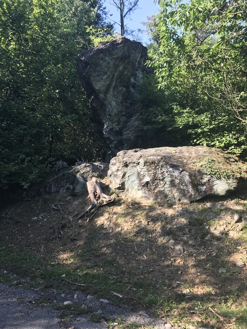 Da Ranco e Angera si vede molto bene la costa occidentale di Meina essendo queste due località posizionate nel punto più stretto del lago Maggiore. L’arrivo alla zona di partenza è oramai vicino, qualche chilometro prima di chiudere il tour in prossimità dell’Oratorio di San Vincenzo vado a deviare girando a sinistra da via San Vincenzo su una stradina che mi porta a visitare una cosa vista nel web che ha catturato il mio interesse, il Sass di Prejo Buja, un masso dell’era quaternaria che il comune di Sesto Calende ha deliberato nominandolo monumento naturale, da non perderci la testa.