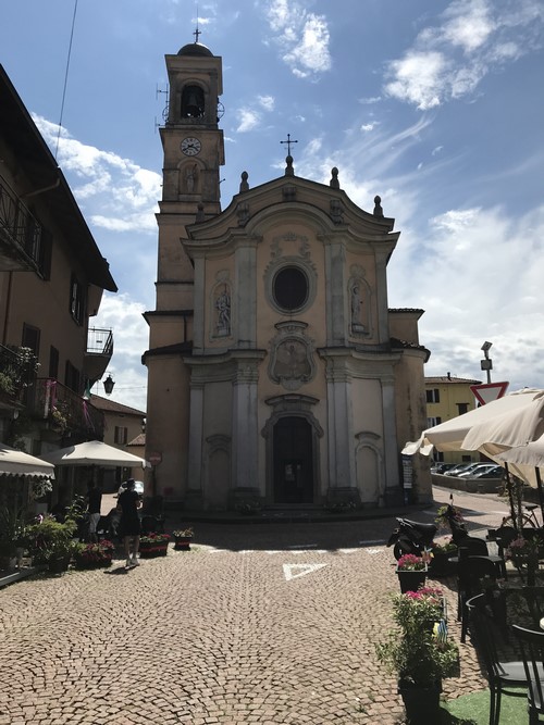 Attraverso il Ticino ed inizio pedalando verso nord, primo paese Arona, da qui lascio la strada vicina al lago per correre su una via che accompagna a sinistra la SS33, facile salitella per arrivare alla basilica di San Carlo dove posso ammirare il colosso, una statua enorme in bronzo posizionata sopra ad una scalinata pavimentata lunga e diritta. Meina e Lesa, temperatura gradevole per una salita leggera, Villa Lesa, Calogna e Magognino.