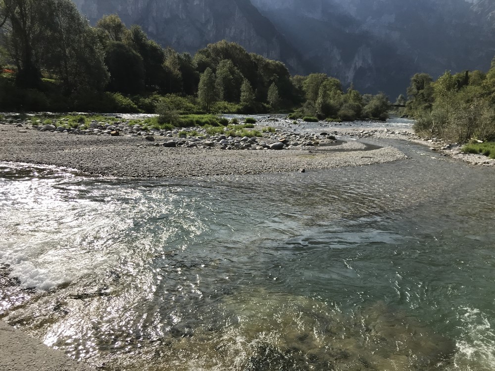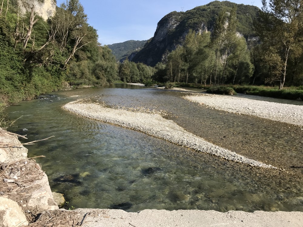 Esco dal centro e tengo il fiume vicino, qualche deviazione per non andare in contromano e poi inizio a pedalare praticamente sulla via contraria che di solito percorro nell’anello tenendo il corso d’acqua alla mia sinistra, il fiume mi accompagna e percorro parte della ciclabile del Brenta di sinistra fino ad arrivare a Valstagna passando per Pove del Grappa, Solagna, Lanari, San Nazario e Merlo in Valbrenta.
