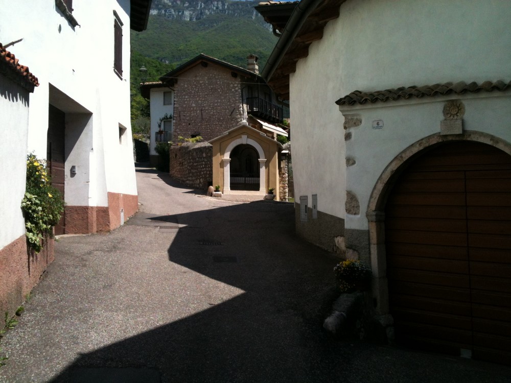 Oramai per lo scarico bike e vestizione impiego pochi minuti e la partenza in bicicletta è veloce. Esco dalla zona commerciale e prendo una strada in salita che mi porta su una ciclabile, dopo tre chilometri inizio a salire in direzione nord sulla SP11 della val d’Adige che già inizia ad essere trafficata soprattutto da motociclette, poca strada nella provinciale per deviare da subito su strade a basso traffico, Platano e Vilmezzano due località collinari prima di arrivare a Spiazzi e qui la pausa è obbligata.