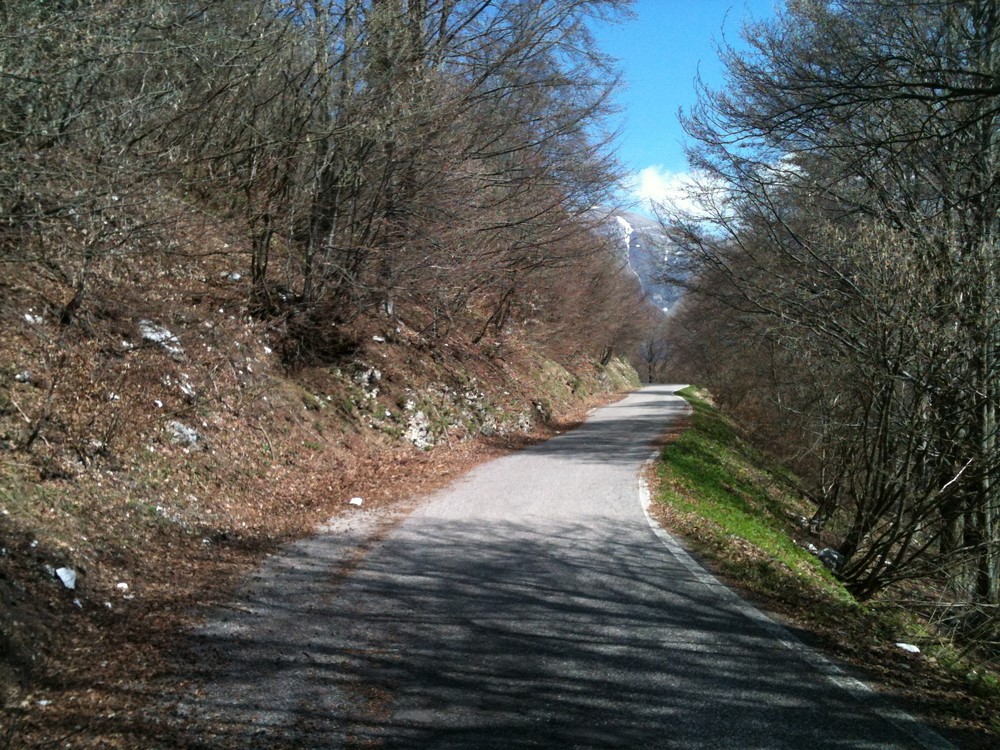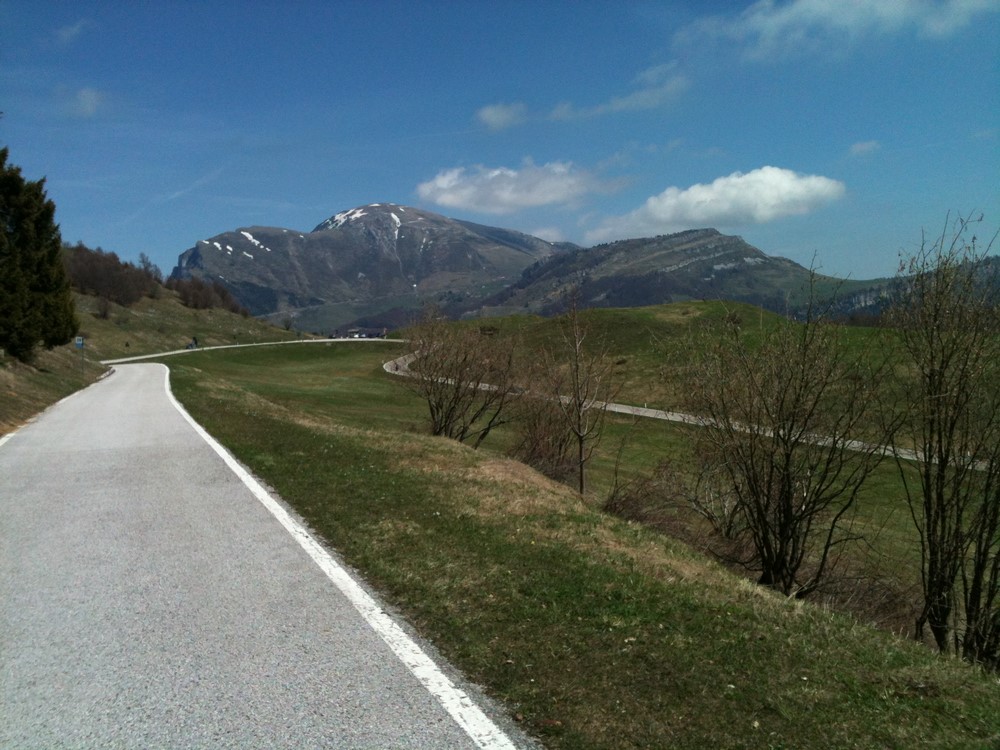 La SP3 è molto bella, in alcuni tratti nelle vicinanze della vegetazione leggermente sporca ma asfaltata bene e con curve dolci. Pedalo in un falso piano che corre sotto al monte Baldo in una giornata di primavera che qui ancora non si vede. Ripasso sotto alla sbarra che mi riporta all’interno del Veneto, dopo circa un chilometro arrivo al rifugio Bocca di Navene, la giornata limpida mi ha dato la possibilità di fotografare il lago di Garda da una quota di oltre 1500 metri, eccezionale.