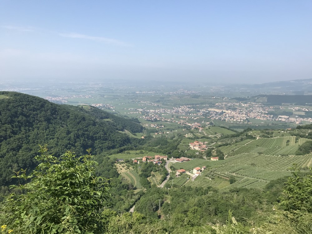Praticamente da Poiano a Fane pedalo su un percorso da favola immerso nel verde dove i panorami sono veramente spettacolari. Tenendo la destra entro nella SP12 che percorro per un breve tratto fino a Croce dello Schioppo passando davanti alle cave di pietra, materiale che viene tuttora usato per le costruzioni edilizie soprattutto locali, in discesa arrivo alla località ponte di Veja.