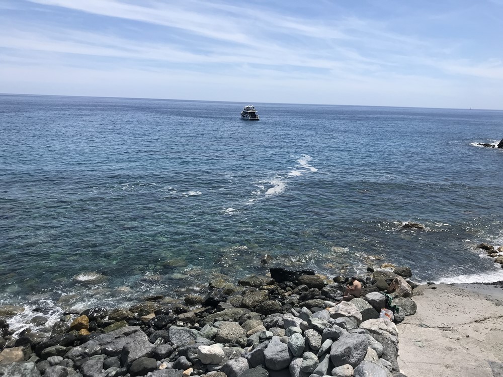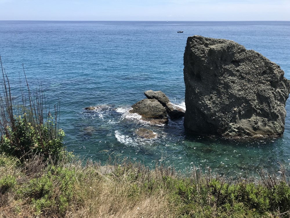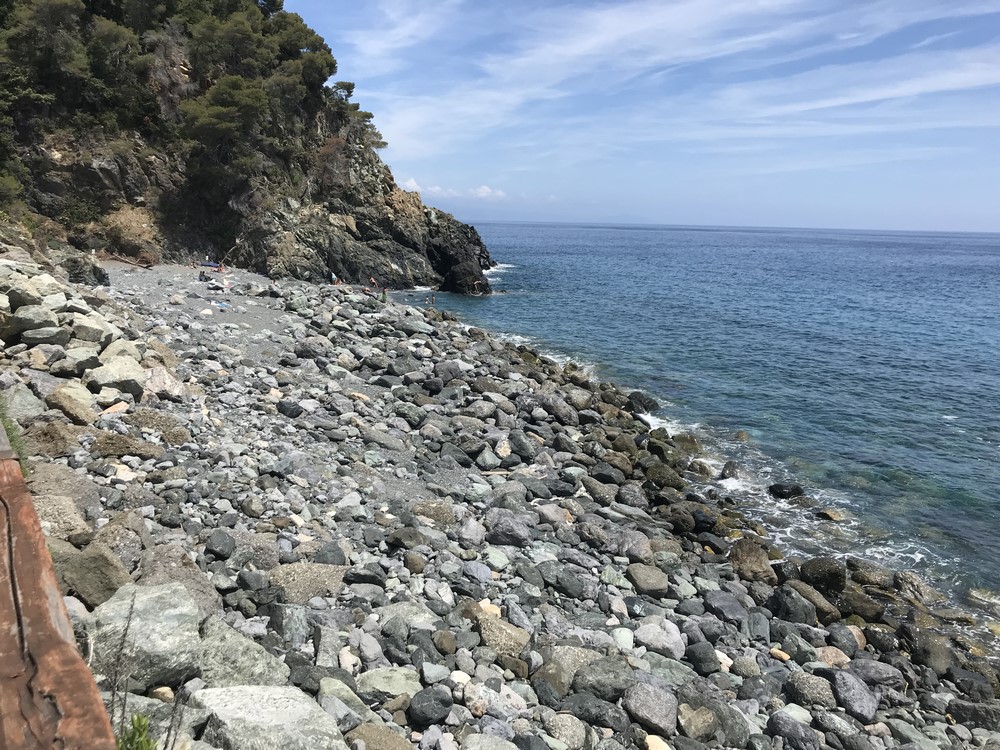 Qui la montagna si tuffa nel golfo Ligure la ciclabile che percorro è straordinaria, corre a fianco del mare e passa dentro la montagna tramite delle gallerie parzialmente illuminate e ben pavimentate, sebbene le gallerie non siano lunghe e illuminate consiglio di utilizzare ugualmente un piccolo faro anteriore e posteriore per segnalare ai pedoni la nostra posizione.