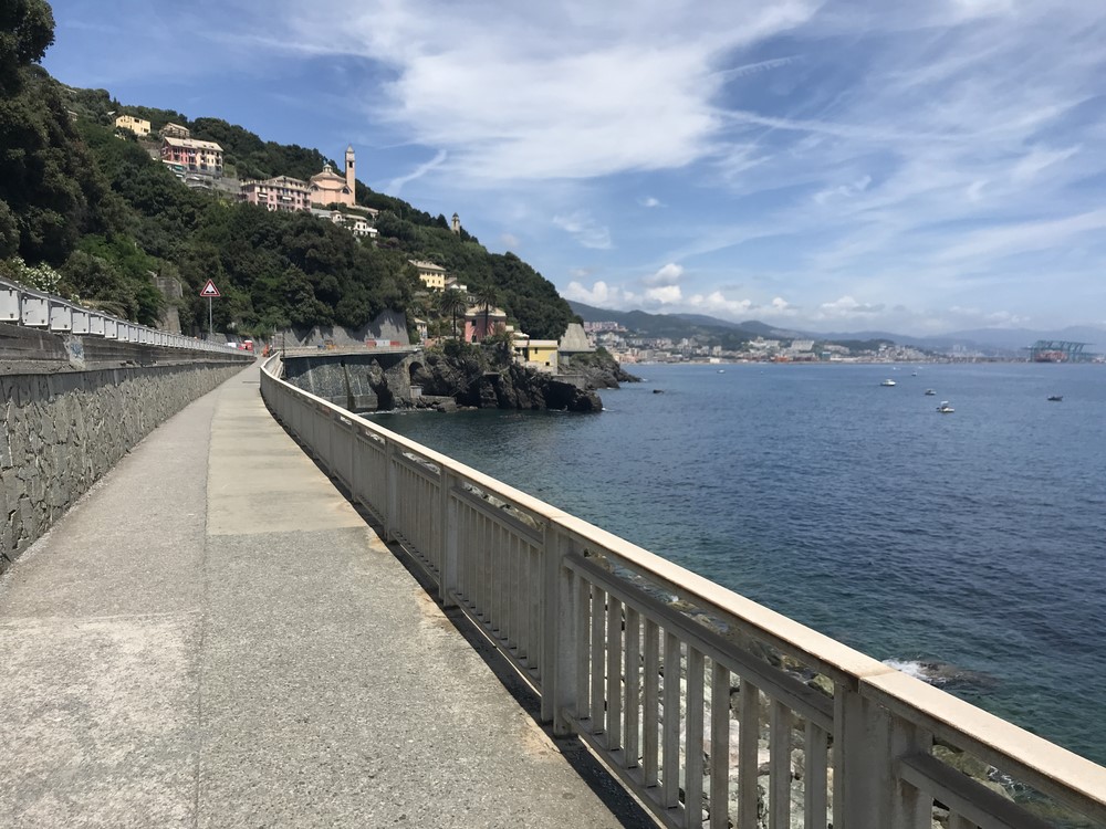 A fine giugno diventa assai difficile poter pedalare esclusivamente nella ciclabile lungomare che parte da Savona ed arriva a Genova soprattutto nelle località turistiche più note dove le aree ciclabili pedonabili sono praticamente intasate da turisti compreso il Lungomare degli artisti ad Albissola Marina, un chilometro di pavimentazione in mosaico costruita negli anni “60 contornato da sculture e ceramiche.