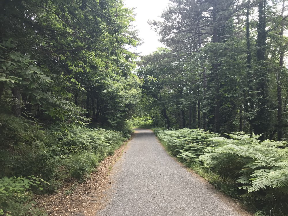 La strada s’impenna, sale con pendenze a doppia cifra appena abbandonato il mare. A fianco del Parco del Beigua – Monte Dente – Gargassa - Pavaglione inizio a pedalare sulla via Superiore dei Giovi, otto chilometri di strada molto bella, stretta e con la vegetazione che occupa gran parte della carreggiata lasciando lo spazio per appena un’auto, fortuna che qui le auto circolanti sono pochissime.