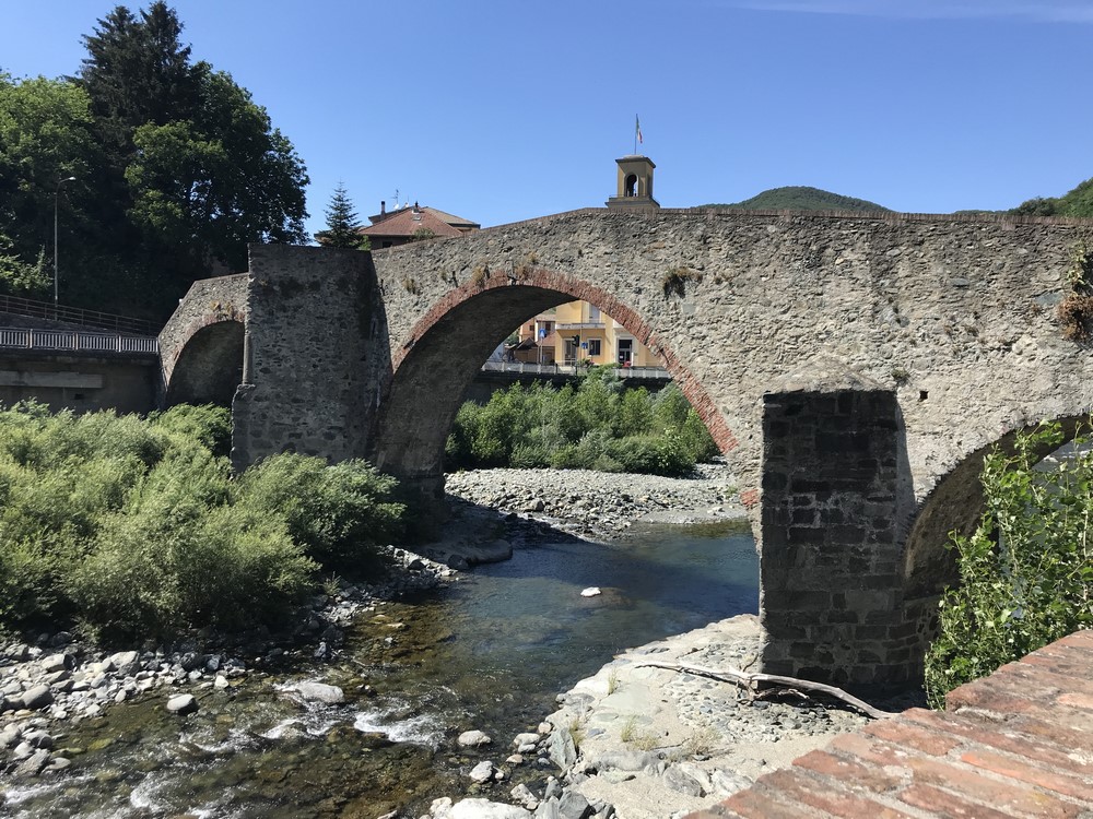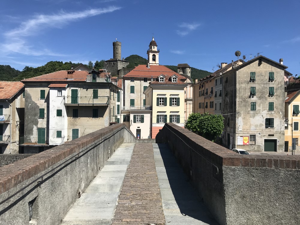 Da Masone corro nella SS456 per quattro chilometri fino a Campo Ligure, qui entro nel piccolo centro medievale scatto qualche foto compreso il ponte antico risalente al IX secolo che passa sopra al torrente Stura.