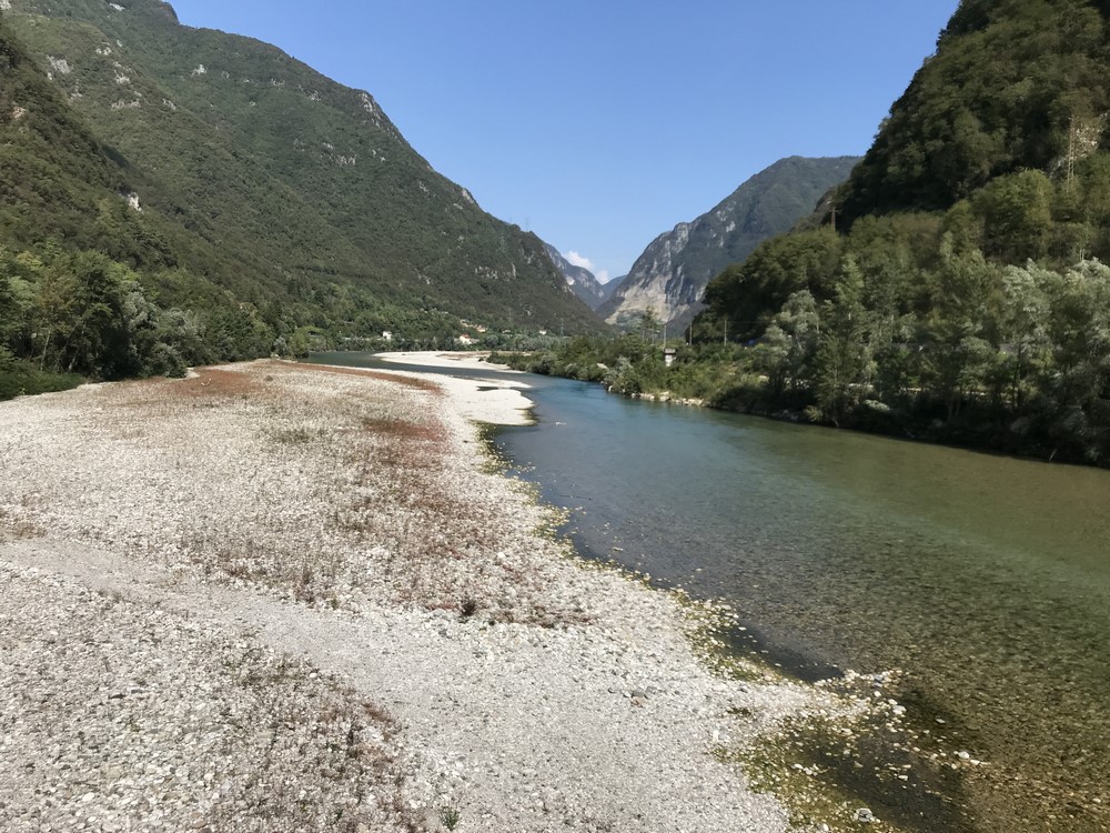 Esco dal centro e tengo il fiume vicino, qualche deviazione per non andare in contromano e poi inizio a pedalare praticamente sulla via contraria che di solito percorro nell’anello tenendo il corso d’acqua alla mia sinistra, il fiume mi accompagna e percorro parte della ciclabile del Brenta di sinistra fino ad arrivare a Valstagna passando per Pove del Grappa, Solagna, Lanari, San Nazario e Merlo in Valbrenta.