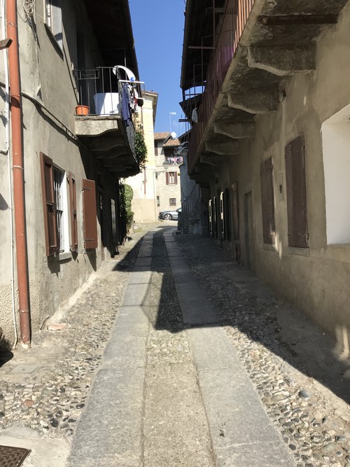 Zizzagando su stradine e sentierini vari evito di correre nella strada asfaltata dove il traffico in questa giornata e assai elevato. Incasate e poi Erba. Qui a Erba ci sta una piccolissima contrada dove il tempo si è fermato al medioevo, residenza fortificata della famiglia dei Carpani si può vedere il portale della Torre, lo Stallazzo, Il vecchio lavatoio e la Pusterla, piano piano senza far rumore quasi al rallentatore pedalo su un ciottolato all’interno del piccolissimo borgo, la stradina passa proprio davanti alle porte d’ingresso di quelle antiche dimore ancora abitate. L’immaginario toglie le auto parcheggiare sulla via e vedo carri e cavalli, un tempo passato sicuramente non facile ma sicuramente più semplice nel vissuto quotidiano dell’epoca.