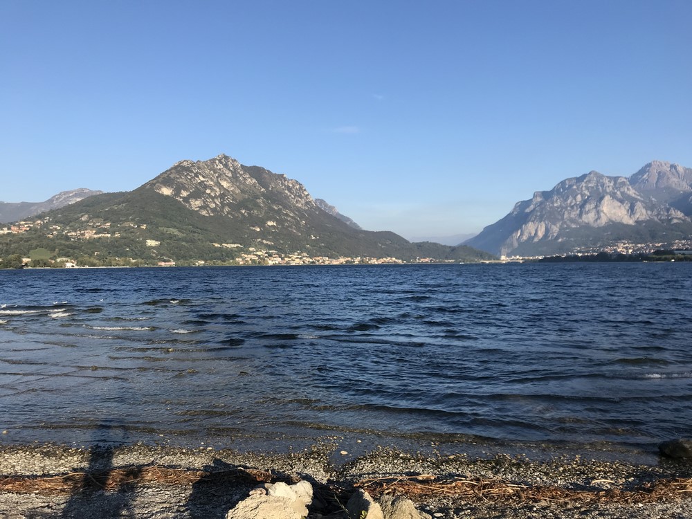 Dopo dieci chilometri di lungo argine arrivo a Olginate e passo da una riva all’altra del lago, il lago di Olginate è abbastanza lungo, da Pascolo salgo per sette chilometri la riva destra del lago fino a Pescarenico e qui ripasso nuovamente l’Adda tramite il ponte Azzone Visconti, a sinistra del ponte vedo l’isola Viscontea. Altri sei chilometri circa sulla sponda avversa, i sentieri e le strade sterrate sono percorribili facilmente, terra e ghiaino appena bagnati dall’umidità della notte sporcano poco la bicicletta.
