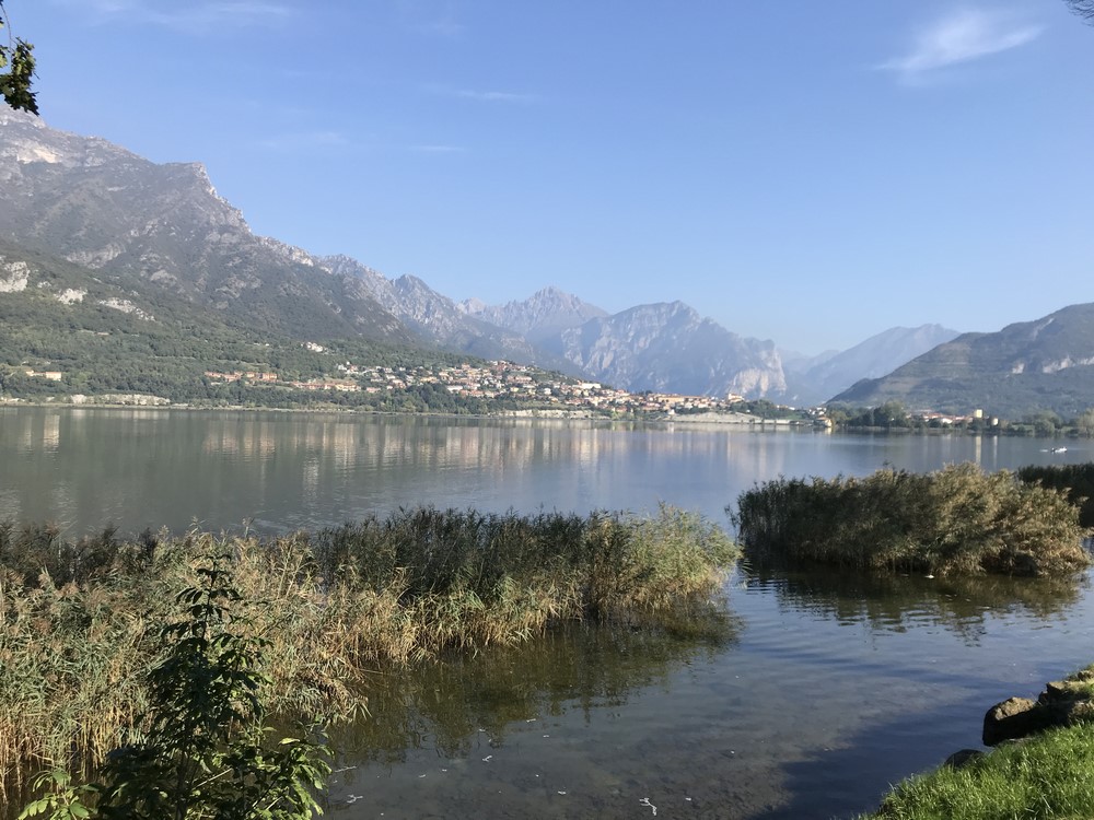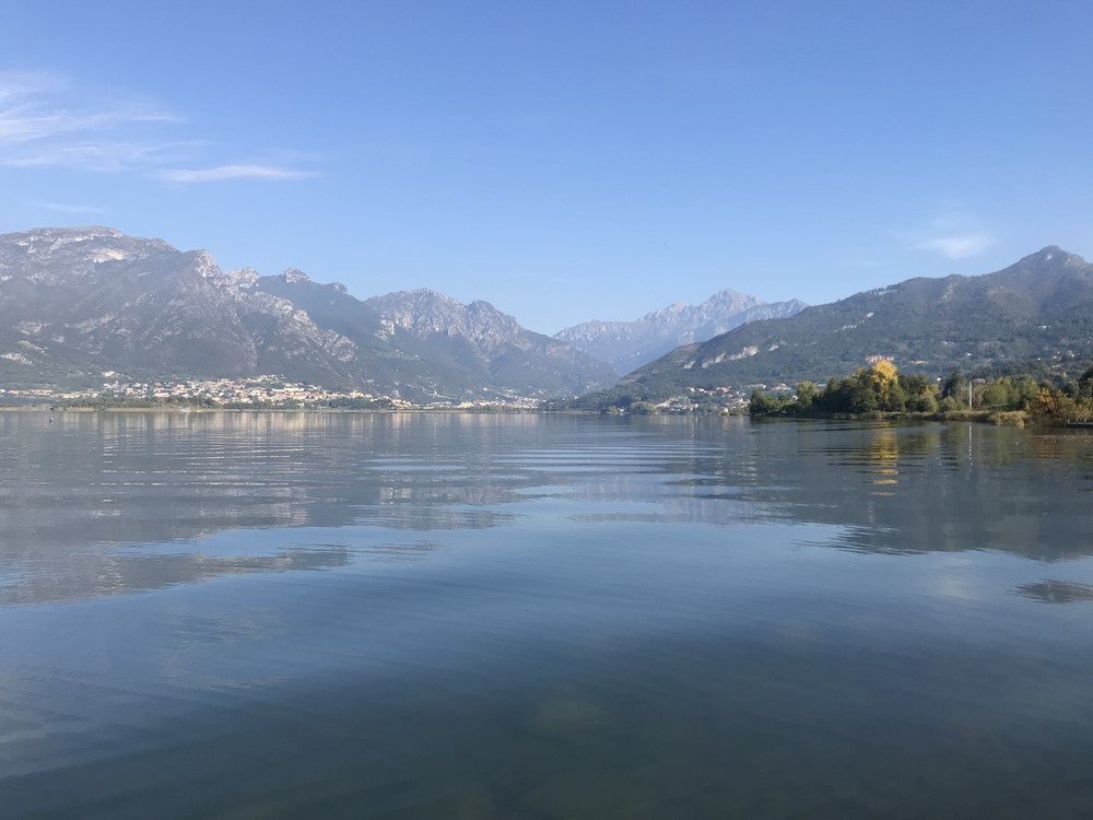 Garlate, la bike punta in direzione ovest sud-ovest, Imberido e Oggiono sono nel lago di Annone, questo bacino è diviso in due parti comunicanti fra loro divise in parte da una penisola per un tratto pedalabile. Seguo la traccia girando attorno al lago e arrivo ad Annone di Brianza, si continua il viaggio Suello, Cesana Brianza e Bosisio Parini, poca strada fra un lago e l’altro sono tutti molto ravvicinati. Adesso pedalo lungo il lago di Pusiano, Garbagnate Rota e Casletto, qui corro con l’acqua a destra su un viale tutto alberato, nel camminamento inizia ad esserci più di qualche persona, alla domenica mattina di una splendida giornata di sole autunnale molti vogliono godersi il passeggio o la corsa mattutina.