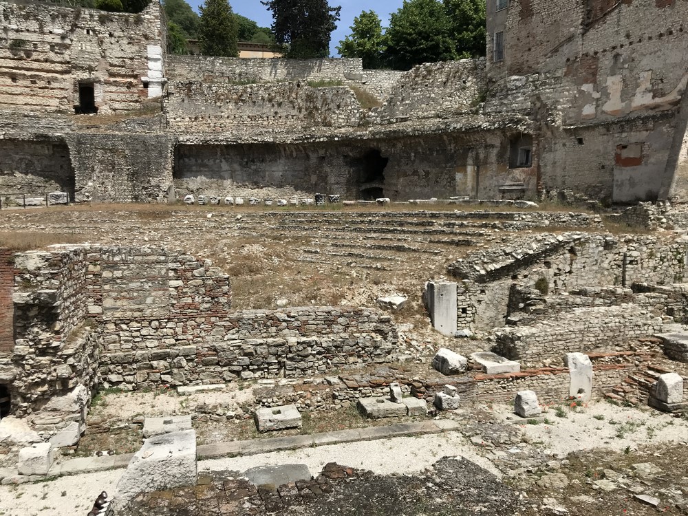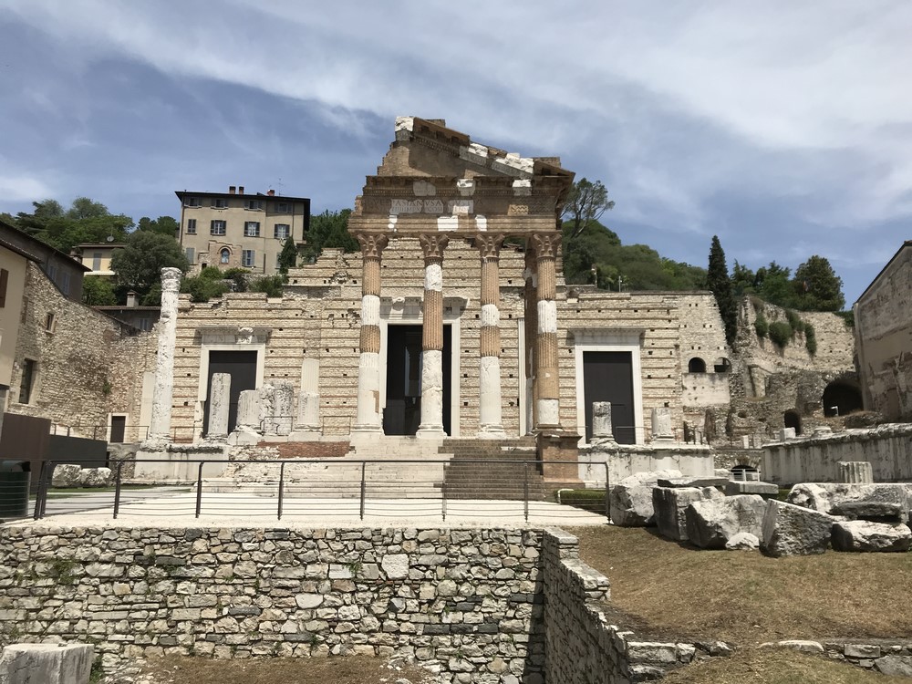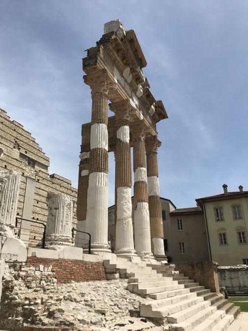 Ritorno verso la città e precisamente nella zona dichiarata nel 2011 dall’Unesco patrimonio mondiale dell’umanità, Vicolo del Fontanone mi porta dinnanzi al teatro Romano dell’antica Brixia dove si possono vedere i resti e le rovine antiche risalenti alla fine del I secolo A.C., fra il teatro e il tempio Capitolino trovo palazzo Maggi Gambara edificato nel tardo rinascimento sui resti di una parte dell’antico teatro. Da via dei Musei molti palazzi noti, a destra la casa di Giuseppe Zanardelli, ancora a destra palazzo Uggeri e palazzo Maggi di Gradella e a sinistra palazzo Martinengo Cesaresco Novarino, la vera Brescia antica in tutto il suo splendore.