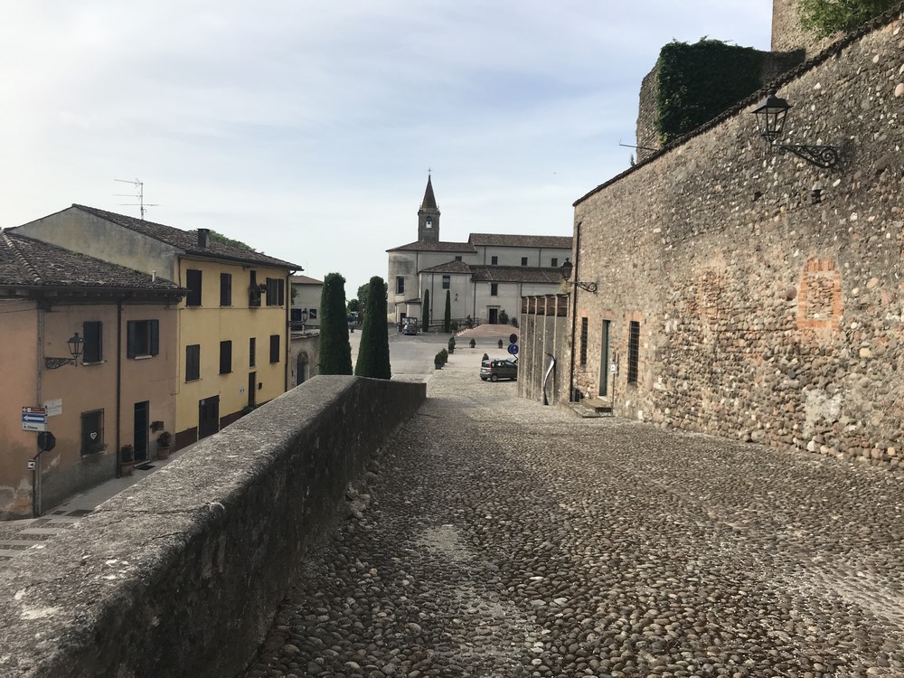 Il percorso sulle colline moreniche mi porta a Cavriana e qui altra tappa fotoreporter, ancora pochi turisti in visita in questo luogo sacro e questo mi dà la possibilità di pedalare nella breve salitella di ciottoli della Via Crucis fino al Santuario della Madonna della Pieve, incantevole, pochi minuti per meditare e raccogliere da una fontana la fresca acqua offerta.