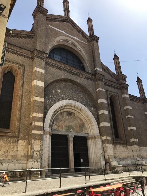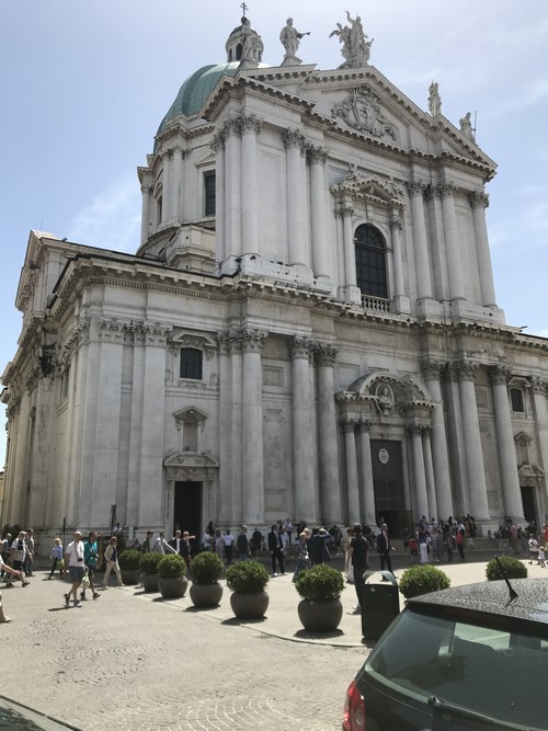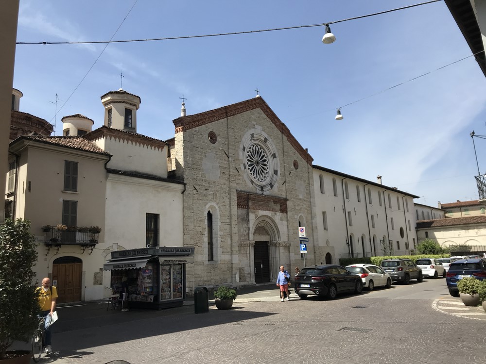 Vado a districarmi fra vicoli e viuzze del centro cittadino godo nell’andare a destra e a manca di continuo disinteressandomi del tempo che scorre così arrivo in piazza della Vittoria dove nella parte più ampia vedo la fontana del Bigio, mi sposto ancora e arrivo in un’altra piazza molto bella, Piazza Paolo VI dove ha sede il Duomo vecchio e il Duomo nuovo, altri palazzi si affacciano in questa piazza, palazzo Broletto, la torre del Pegol e la loggia delle Grida, poche persone a passeggio, probabilmente tutte atte a seguire il mercato odierno nelle vicine piazze e questo fa sì che oggi questo luogo diventi un posto incantevole e rasserenante giusto per una pausa di qualche minuto.