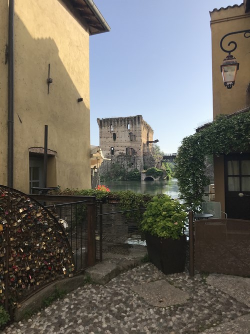 Arrivo a Borghetto che come dice il nome è un piccolissimo borgo posizionato fra il fiume Mincio e il canale Seriola, alle 7:30 posso girare per le poche vecchie vie senza alcun problema condividendo il panorama con un ciclista e un mattiniero runner, mai successo di girare in questo paesello totalmente solo, magnifico.