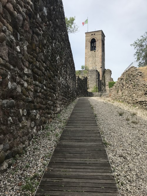 Entro nel castello e inizio a girare per le stradine di ghiaino, trovo la via chiusa per restauro appena prima della torre dei Prigionieri, un vero peccato, da sotto riesco a vedere torre Mirabella e la sede del museo delle armi Luigi Marzoli, comunque sia nel gps scaricabile è ben segnato il percorso completo nel caso qualcuno volesse riprovarci nei giorni futuri.