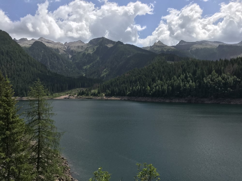 Bellamonte e poi Paneveggio con il suo lago, pure su questa strada il frastuono dei motori diventano fastidiosi ogni passo in quota è terra di conquista per i motociclisti, che guardando le targhe dei veicoli, arrivano quasi tutti d’oltralpe.